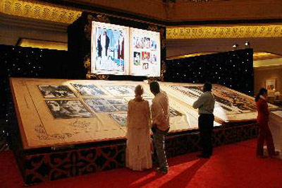 世界上最大的相冊自6月4日起在阿聯(lián)酋首都阿布扎比的王宮酒店展出。這一相冊寬5.5米,高4.5米,共18頁,收藏了約210張阿聯(lián)酋已故總統(tǒng)扎耶德·阿勒納哈揚(yáng)生前出行、訪問的主要?dú)v史照片,已被“吉尼斯世界紀(jì)錄”組織認(rèn)定為世界最大相冊。為便于瀏覽,展出方在相冊前設(shè)置了電子觀摩屏,參觀者可以通過點(diǎn)擊鼠標(biāo)翻閱相冊。