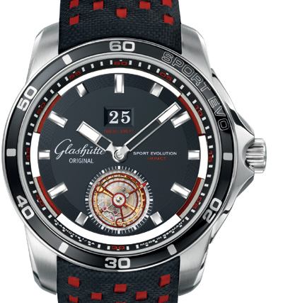全球限量100枚格拉蘇蒂運動防震陀飛輪腕表,采用直徑46mm的堅固精鋼表殼,并以亮面與霧面拋光交錯處理,兼具堅固耐用與復(fù)雜功能,結(jié)合現(xiàn)代科技創(chuàng)新與設(shè)計。搭載94型自動上鏈機芯,大日歷視窗位于12點鐘,采用黑底白字凸顯。格拉蘇蒂制表廠與位于德國斯圖加特市的弗朗豪夫科技研發(fā)團隊合作,研發(fā)出制作防震元件的理想材料。這些防震元件由具有韌性的彈性體組成,置于機芯與表殼之間,用于固定機芯。由彈性材料制作的4個緩沖元件吸收了至少60%的外力沖擊。也因為這樣的吸震系統(tǒng),即使在強撞擊的情況下,亦能確保機芯的可靠性與準確度。