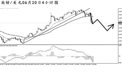 歐元兌美元在連續(xù)發(fā)生MACD的頂背離信號之后,匯價終于大幅回落。4小時圖均線系統(tǒng)和1.3275的道氏低點雙雙被跌破,歐元的漲勢告一段落。短線匯價面臨一定的上調(diào)風(fēng)險,但小時圖主趨勢已轉(zhuǎn)為向下,預(yù)計歐元將繼續(xù)下攻1.3175的支撐,若跌破將會打開進一步的下行空間。