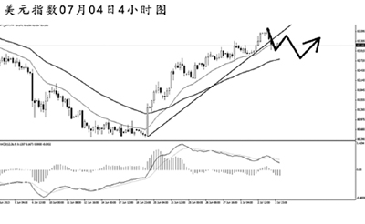 美元指數(shù)持續(xù)走強,短線連續(xù)發(fā)生角度明顯的MACD頂背離信號,多頭動能有所減弱。4小時圖的上升趨勢線被小幅跌破,但均線系統(tǒng)的依托作用仍然完好。美元指數(shù)上方的強阻力在84.45,首先關注道氏低點支撐82.95,只要美元指數(shù)不有效跌破此點位,則將保持上沖的節(jié)奏,逐步向前方高點發(fā)起沖擊。