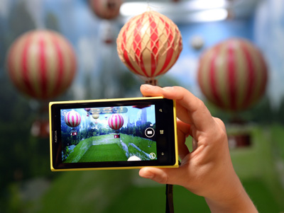 在美國紐約舉行的發(fā)布會上,工作人員展示了諾基亞新品手機Lumia1020的拍攝功能。該手機配備4100萬像素背照式傳感器,將于7月26日正式在美國上市銷售。