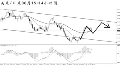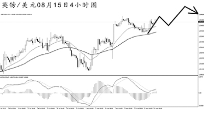 歐元兌美元將上升趨勢線跌破后迅速下行,此前4小時圖持續(xù)的MACD頂背離信號發(fā)揮了效果。從空間上看,歐元下方的強(qiáng)支撐在道氏低點(diǎn)1.3190。短線匯價面臨一定的上調(diào)壓力,但由于日線圖強(qiáng)阻1.3415橫亙在上,歐元再創(chuàng)新高之前,做多的風(fēng)險較大。預(yù)計歐元調(diào)整過后仍有望繼續(xù)走低。