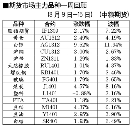 期貨市場主力品種一周回顧[8月9日-8月15日]
