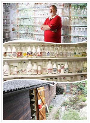 在惠勒家的花園中,有整整6個小棚屋用來放置這些收藏品,其中包括1.7萬個英國牛奶瓶和2500個外國奶瓶,來自包括澳大利亞、巴基斯坦、美國和加拿大等地,據(jù)說總價值高達10萬英鎊(約合95萬元人民幣)。