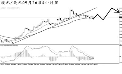 澳元兌美元的下調(diào)力度較大,將4小時(shí)圖的上升趨勢(shì)線跌破,MACD顯示空頭動(dòng)能占主導(dǎo)。道氏低點(diǎn)支撐在0.9285,刺破此點(diǎn)位之前,澳元的上漲趨勢(shì)將延續(xù)。短線待多頭力度再次展現(xiàn)之后繼續(xù)入場(chǎng)做多的機(jī)會(huì)。