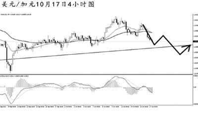 美元兌加元此前的強力上沖走勢并未能延續(xù),匯價隨即展開回落,目前再度向大級別上升趨勢線的支撐一帶發(fā)起挑戰(zhàn)。4小時圖的主趨勢已轉為向下。若順利跌破趨勢線,匯價將挑戰(zhàn)1.0180的低點支撐,但預計本輪下跌直接突破此位置的概率不高。