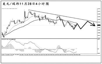 美元兌瑞郎持續(xù)震蕩下行。日線圖上看,雖然道氏高點阻力0.9175被升破,但后市匯價遲遲未能再度暴發(fā)出強勁的上沖動能。4小時圖均線系統(tǒng)保持壓制的狀態(tài),由于下方近期并沒有強勁的支撐,預計匯價仍將保持下行節(jié)奏。短線關注0.9145的阻力,只有有效升破此位置才能展開明顯的上調。