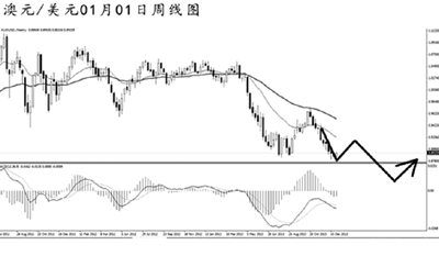 美元兌加元2013年全年都處于緩步震蕩走高的節(jié)奏中,從1月份的最低點(diǎn)0.9815,到12月的最高點(diǎn)1.0735,漲幅只有900余點(diǎn)。周線圖上升趨勢線和均線系統(tǒng)都對匯價起到良好的依托作用。2011年10月份高點(diǎn)1.0655對匯價的阻力作用強(qiáng)勁,目前仍未對此形成有效升破。今年初美元兌加元有望走出一波下調(diào)趨勢,關(guān)注趨勢線1.0390附近支撐,若無法順利跌破此位,中長線的漲勢將繼續(xù)保持。