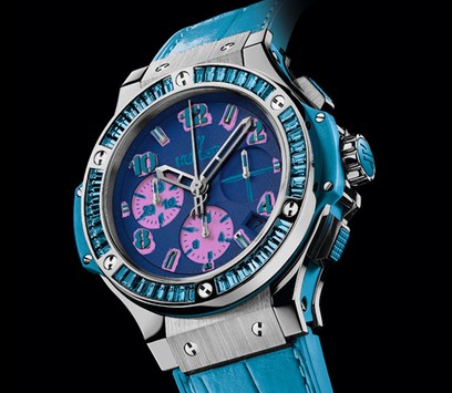 玫瑰粉、幽藍(lán)、炫紫、蘋果綠,色彩的爆炸與碰撞完美融合于四款腕表中——色彩斑斕、活力四射,這是對(duì)波普藝術(shù)(Pop