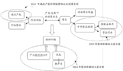 2014年鋼材市場的供需很可能呈現(xiàn)弱平衡狀態(tài),供給和需求均小幅上升,難有超預(yù)期表現(xiàn);影響價格的主要矛盾可能落在了成本和產(chǎn)業(yè)鏈利潤水平的變化上,產(chǎn)能過剩的鋼材市場弱勢格局中,市場關(guān)注的是成本的支撐以判斷價格的底部,那么礦價的波動很可能會是影響鋼價的主要矛盾。