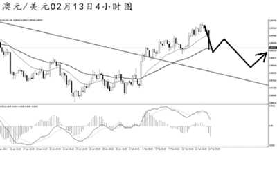 澳元兌美元此前的反彈已經(jīng)將日線圖下降趨勢線的阻力升破,但匯價挑戰(zhàn)0.9085的道氏高點阻力未果,短線重新展開下跌。本周四早間,受到不良就業(yè)數(shù)據(jù)的影響,澳元出現(xiàn)暴跌行情,將短線的主趨勢重新扭轉(zhuǎn)為向下。4小時圖均線系統(tǒng)的依托位也被刺破,預計后市澳元小幅修正之后將繼續(xù)走弱,做多需要暫緩。