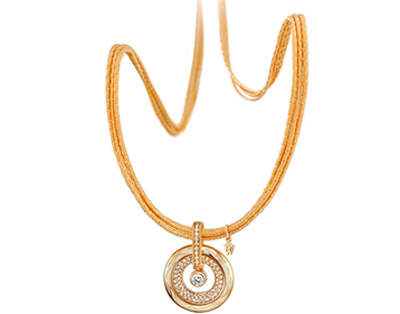 華洛芙全新“真正的喜悅”系列護(hù)身符吊墜從兩方面捕獲了佩戴著的心-從容挑選自己深愛的幸運(yùn)色和19種奇妙的佩戴方式。真正的喜悅護(hù)身符吊墜的外環(huán)由活潑時(shí)尚的顏色與至純的18k黃金相互輝映,構(gòu)成華洛芙經(jīng)典風(fēng)格的抽象羽翼,同時(shí),也為中心的單顆鉆石和整環(huán)鑲鉆的內(nèi)環(huán)增加了現(xiàn)代時(shí)尚的氣息。中心的獨(dú)立鉆石與整環(huán)鑲鉆的內(nèi)環(huán)都懸掛于一個(gè)精致的珠寶卡扣之上。每個(gè)護(hù)身符環(huán)都用絲綢流蘇裝飾,賦予整個(gè)項(xiàng)鏈靈動(dòng)活潑的韻味和宛如陽光般的溫暖。佩戴者可以在任何時(shí)候根據(jù)不同的心情改變護(hù)身符吊墜的形象,既可以挑選您自己的幸運(yùn)色,也可以變換為時(shí)尚簡約又經(jīng)典復(fù)古的白色琺瑯面,亦或者是選擇閃閃發(fā)光的流蘇吊墜。如此的多面性讓擁有這款護(hù)身符吊墜的女性無比幸運(yùn)。