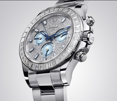 蠔式恒動(dòng)宇宙計(jì)型迪通拿鑲鉆腕表,將氣派顯貴的950鉑金與品質(zhì)純凈的閃爍鉆石巧妙融合。除了冰藍(lán)色計(jì)時(shí)盤,整個(gè)表面密鑲鉆石。這表面顏色僅勞力士鉑金腕表所獨(dú)有。華麗奪目的外圈鑲有36顆方形切割鉆石。