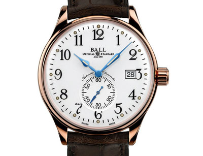 Chronometer)字樣,證明此腕表的精準(zhǔn)機芯已獲瑞士天文臺(COSC)認(rèn)證。此外,此表款的所有特征,包括阿拉伯?dāng)?shù)字的刻度、白色搪瓷面盤、經(jīng)過特別切割的指針及在六點鐘位置的小面盤,其設(shè)計靈感來自品牌首枚由鐵路人員佩戴的短表煉懷表。而面盤上「7」時的字樣刻度更是由品牌名稱「Ball