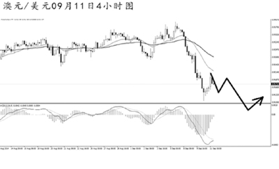 澳元兌美元短線下跌的力度無(wú)比強(qiáng)勁,均線系統(tǒng)重新形成空頭排列,MACD顯示下跌動(dòng)能占據(jù)明顯的優(yōu)勢(shì)。短線匯價(jià)發(fā)生了一定程度的反彈,但并沒(méi)有改變整體的下跌趨勢(shì),目前可關(guān)注道氏高點(diǎn)0.9215,只要此點(diǎn)位不被升破,澳元仍有繼續(xù)下行的動(dòng)力。