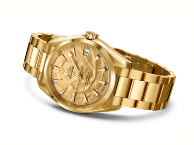 Terra腕表采用含蓄內(nèi)斂的38.5毫米的18K黃金表殼,搭配相同材質(zhì)的表鏈;表盤亦由18K黃金打造。腕表的18K黃金指針覆以LumiNova夜光涂層,在任何光線條件下均可迅速準(zhǔn)確地讀取時(shí)間。中央秒針尾端為精致的007標(biāo)志