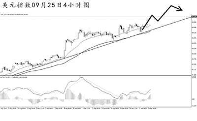 芝加哥聯(lián)儲(chǔ)主席埃文斯本周表示,“我們應(yīng)該在調(diào)整美國貨幣政策立場上格外耐心——即便是耐心到允許通脹略微超過我們的目標(biāo)水平也不為過,這樣會(huì)適當(dāng)平衡我們的政策目標(biāo)所面臨的風(fēng)險(xiǎn)!痹诖酥,紐約聯(lián)儲(chǔ)主席杜德利和明尼阿波利斯聯(lián)儲(chǔ)主席柯薛拉柯塔曾警告稱,在確信美國經(jīng)濟(jì)能夠經(jīng)受住更高借貸成本所帶來的影響之前,美聯(lián)儲(chǔ)不應(yīng)該調(diào)整利率。杜德利和埃文斯兩人均表達(dá)了對通脹率過低的擔(dān)憂,并提到1937年美聯(lián)儲(chǔ)收緊貨幣政策削弱了經(jīng)濟(jì)從大蕭條中復(fù)蘇勢頭的案例。美聯(lián)儲(chǔ)自2008年12月以來一直把基準(zhǔn)利率維持在接近零的水平。最近的報(bào)告顯示,美國經(jīng)濟(jì)朝著美聯(lián)儲(chǔ)制定的完全就業(yè)和價(jià)格穩(wěn)定的目標(biāo)邁進(jìn)的步伐有所放緩。8月份非農(nóng)就業(yè)人數(shù)增幅從前一個(gè)月的21.2萬人減少至14.2萬人。通脹率已有兩年多的時(shí)間一直處于美聯(lián)儲(chǔ)制定的2%的目標(biāo)水平之下?卵滤硎,他預(yù)計(jì)未來四年通脹率將維持在2%的美聯(lián)儲(chǔ)目標(biāo)水平以下。不過,周三公布的美國8月新屋銷售數(shù)據(jù)激增,較上月跳增18%至年率50.4萬戶,為連續(xù)第二個(gè)月增長,且達(dá)到了2008年5月來逾六年最高水準(zhǔn),這是美國經(jīng)濟(jì)仍能保持較強(qiáng)勁增長的新證據(jù)。因此,美元指數(shù)短線繼續(xù)沖高。日線圖上看,上升趨勢線保持完好的支撐效果。上方的大級別阻力84.70已被升破,美元指數(shù)將上漲空間徹底打開。4小時(shí)圖均線系統(tǒng)多頭排列,雖然MACD發(fā)生了角度明顯的頂背離信號,但由于趨勢線未被跌破,預(yù)計(jì)美元指數(shù)面臨一定的下調(diào)風(fēng)險(xiǎn),但后市仍將保持上漲的態(tài)勢。