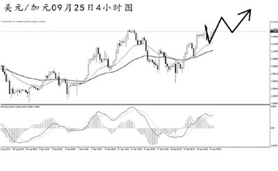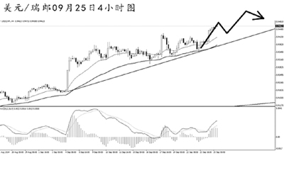 美元兌瑞郎高位盤整之后繼續(xù)強(qiáng)力走高。日線圖上漲斜率陡峭,由于上方近期并沒(méi)有明顯的強(qiáng)阻力,匯價(jià)仍有較為廣闊的沖高空間。4小時(shí)圖上升趨勢(shì)線的支撐作用完好,均線系統(tǒng)多頭排列。MACD頂背離信號(hào)明顯,但在跌破趨勢(shì)線支撐之前,需繼續(xù)抱以看漲的思路,首要目標(biāo)0.9650一線。