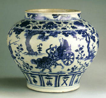 2005年倫敦佳士德拍賣會上,一件“鬼谷子下山”瓷罐橫空出世,以2.3億元人民幣的成交價驚動了世界。這件瓷器將中國著名的青花瓷推舉到了一個難以到達(dá)的高度,隨后,一股瓷器熱橫掃中國。 |