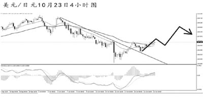 歐元兌美元盤整過后重新拾得跌勢。經(jīng)過此輪連續(xù)下跌,均線系統(tǒng)已重新形成向下的排列,MACD顯示空頭動能充盈。短線歐元的下跌力度保持完好,將首先挑戰(zhàn)1.2605一線的支撐,跌破后將向1.2500逐步挺進。