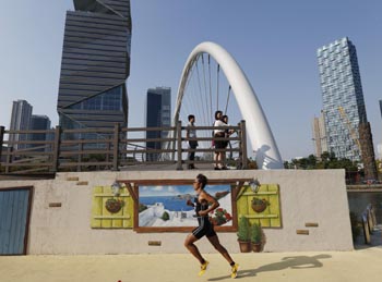 這些建筑不僅外觀時(shí)尚,而且智能環(huán)保。蓋爾解釋說,這里的大樓玻璃窗冬季能存儲熱量,夏季能利用太陽能控制室內(nèi)空調(diào)。大多數(shù)樓盤都在樓頂種有綠色植物,便于夏季收集雨水和降溫。所有水,從雨水到?jīng)_廁水都被循環(huán)再利用,用于灌溉和降溫。當(dāng)?shù)仉娬井a(chǎn)生的熱能可為大樓泵取熱水。甚至連建造松島的土地也是圍海造田從黃海中獲得的。