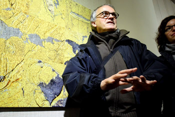 法國(guó)新現(xiàn)實(shí)主義畫(huà)家杜皮爾·米歇爾正在介紹他的作品《黃色斑馬線》 |