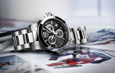 為達到極高的精準(zhǔn)度,一款獨特的新型石英機芯L440應(yīng)運而生。這款機芯帶有一個內(nèi)置閃存的微型控制器,讓腕表可以即時重置,并記錄中間時間。這一外觀亮麗的精鋼腕表直徑為41毫米,黑色表盤上顯示時、分,6時位置設(shè)有小秒盤,擁有日期顯示功能,精密計時功能通過一根中心秒針、2時位置設(shè)有的30分鐘計時盤與10時位置設(shè)有的12小時計時盤實現(xiàn)。紅色指針閃耀于腕表中央,顯示精確至百分之一秒的時間。該計時腕表搭配有精鋼表帶和三重安全折疊表扣。
