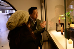 石工坊主人陳真云為嘉賓講解壽山石雕 |