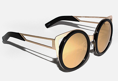 硬朗的黑色醋酸纖維鏡框搭配金色鏡片,碰撞出強(qiáng)烈的色彩對(duì)比和沖擊力。