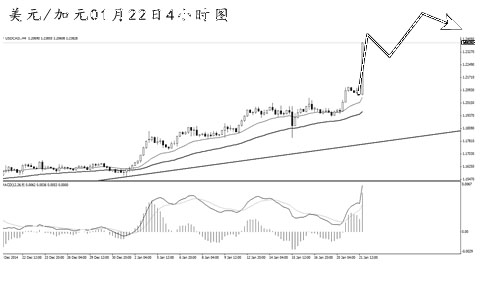 美元兌加元受到加拿大央行降息25個基點的影響,強力上行沖高。從日線圖上看,匯價的上漲斜率進一步加大。由于近期沒有任何的有效阻力,匯價仍有廣闊的空間可供利用。4小時圖均線系統(tǒng)多頭排列,道氏低點的支撐再度上提到1.2060。此前的MACD頂背離信號并沒有發(fā)揮明顯的作用。短線匯價面臨一定的調整風險,但預計整體走強的趨勢不會發(fā)生改變。