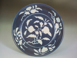 明宣德 藍地白花折枝花卉紋盤 洛克菲勒基金會藏 |