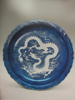 元 霽藍釉白龍紋菱口盤 直徑46厘米 伊朗國家博物館藏 |