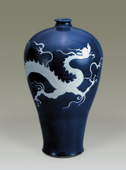 揚州博物館鎮(zhèn)館之寶:元 霽藍釉白龍紋梅瓶 |