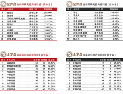 不過,分析師的薦股成績并沒有隨大盤的震蕩走弱而降低,1月分析師研究能力排行榜前十的分析師,推薦股票在20日短線評測中最高漲幅均高于120%,與上月不相上下。