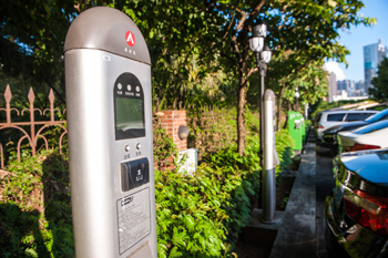 在屬于先期安裝的福田區(qū)蓮花二村里,記者在該小區(qū)靠近路口的停車場(chǎng)找到了十余個(gè)帶棚頂?shù)某潆姌,但是這些帶有充電樁的停車位已全被被劃為“固定車位”,占用車位的均為燃油車輛。而充電樁只有少數(shù)幾個(gè)顯示仍在工作狀態(tài),其余的均為黑屏。有居民表示,占用這些車位的并非小區(qū)居民,而是附近的企業(yè),帶充電樁的車位白天被外來(lái)車輛占用,晚上該企業(yè)會(huì)將車位鎖上,普通居民根本無(wú)法在此充電。而在同被要求安裝充電樁的星河時(shí)代、中海華庭等其他小區(qū),記者沒(méi)有找到安裝好的充電樁。