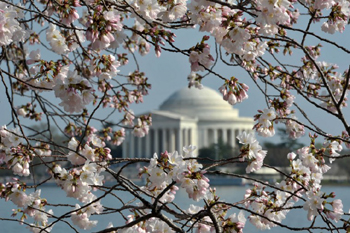 華盛頓每年一度的“國(guó)家櫻花盛開節(jié)慶”,簡(jiǎn)稱櫻花節(jié),始自1935年。櫻花綻放季節(jié)有早遲,但長(zhǎng)約三周的櫻花節(jié),無論櫻花屆時(shí)盛開與否,都在三月四月之交舉行,歷史上曾多次出現(xiàn)飄雪的櫻花節(jié)。華盛頓櫻花有十幾種,其中以吉野櫻為最多,盛開期以七成的櫻花綻放為標(biāo)志。