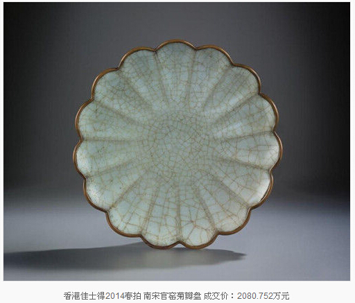 雖然古瓷市場的熱點目前仍在明清瓷器,但以宋瓷為代表的高古瓷器低迷的市場狀態(tài)正在逐年改變,精品面世屢屢振奮市場。2014年香港蘇富比春拍一件“北宋定窯劃花八棱大盌”以1.16億元成交創(chuàng)造了宋代瓷器的世界拍賣紀(jì)錄。今年4月的香港蘇富比又推出一件“南宋官窯青釉八方弦紋盤口瓶”,以9190萬元拍出。低價位如今年香港佳士得春拍,估價30-50萬港元的元明哥窯盤亦爆冷以880萬港元(人民幣704.88萬元)的高價成交。保利2015春拍,13世紀(jì)乾隆御題官窯貫耳小壺747.5萬元成交。