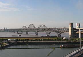 交通部長江航道局航道行政管理處處長薛俊說,長江干流上影響航運最典型、最突出的就是南京長江大橋。20世紀(jì)60年代建造的南京長江大橋,凈空高度僅有24米,如同一座鐵鎖,把大船擋在橋下,豐水期僅能通過3000噸級船舶,萬噸級外輪根本不可能通過。后來新建的蕪湖、銅陵、安慶等長江大橋的凈高,也“將錯就錯”地比照南京長江大橋的凈空高度建設(shè),致使南京至銅陵213公里可供萬噸級海輪通航的深水航道未得到充分利用。