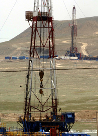 石油井架在新疆準(zhǔn)噶爾盆地鉆探。(本報(bào)資料照片) | 記者近期在西北調(diào)查發(fā)現(xiàn),以煤炭、石油、天然氣和電力為主導(dǎo)的能源產(chǎn)業(yè)近年來(lái)在西北地區(qū)發(fā)展迅猛,已成為支柱產(chǎn)業(yè),在這期間銀行信貸資金大量進(jìn)入能源領(lǐng)域,能源金融資金的集中度越來(lái)越高,銀行信貸資金繼房地產(chǎn)貸款、高校建設(shè)貸款后又出現(xiàn)了新的“壘大戶”現(xiàn)象,能源金融潛在的風(fēng)險(xiǎn)正變得越來(lái)越大。