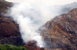 廣西省南丹縣大廠鎮(zhèn)的銅坑礦一塌陷火區(qū),周邊山上的植物已經(jīng)枯死,當(dāng)?shù)厝罕姺Q之為“火焰山”。 |