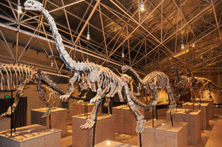 世界恐龍谷室內(nèi)展廳的恐龍化石骨架。蔡祥榮