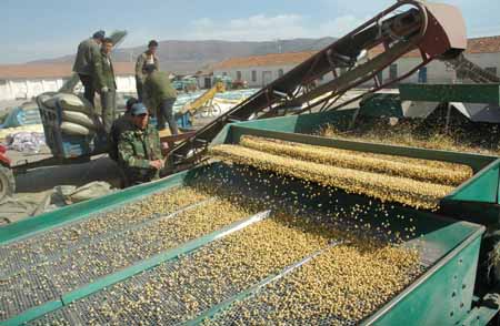 幾位農(nóng)民在中央儲備糧牡丹江直屬庫(林口縣)建堂糧庫國儲糧大豆收購現(xiàn)場交售大豆。新華社發(fā)(張春祥攝) | 2008年我國玉米大豐收,玉米總產(chǎn)量高于消費量,在金融危機影響下,玉米消費在加工行業(yè)、飼料行業(yè)及出口方面都不順暢,玉米消費需求不旺。專家認為,如果今年東北玉米繼續(xù)豐收,國內(nèi)玉米供應(yīng)將出現(xiàn)階段性過剩風(fēng)險,陳化糧的概念可能再次出現(xiàn)。