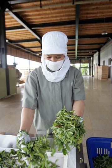 以開發(fā)高端旅游產(chǎn)業(yè)聞名的云南柏聯(lián)集團2007年進入瀾滄縣惠民鄉(xiāng),在景邁山腳建造了一座占地7000多平方米、極具現(xiàn)代氣息的“普洱茶莊園”;走進莊園,堪稱一次愉快的普洱茶工業(yè)之旅———車間嚴格按照萎調(diào)、殺青、揉捻、包裝等等十余道生產(chǎn)工序區(qū)分開,每個車間均配備了一流的機械設(shè)備,進行流水線操作,40余名工人必須穿上一體化工作服、洗三次手、酒精消毒才能獲準(zhǔn)進入。