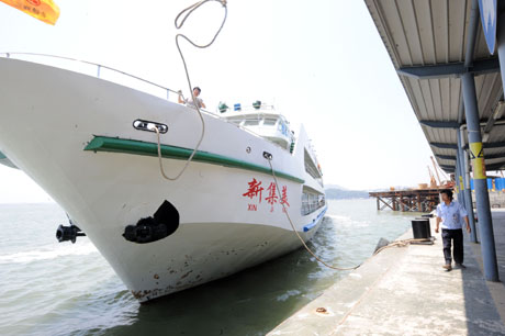 海峽論壇于5月15日至22日在福建廈門(mén)、福州、泉州、莆田等地舉行,參加論壇系列活動(dòng)的臺(tái)灣各界、各縣市的8000多位鄉(xiāng)親陸續(xù)抵達(dá)。圖為從金門(mén)駛來(lái)的新集美號(hào)抵達(dá)廈門(mén)。新華社記者