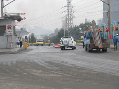 大貨車進進出出,10多根煙囪吞云吐霧。蒙蒙雨霧中,偌大的通鋼廠區(qū)繁忙而又安靜。如不親臨現(xiàn)場,很難相信兩周前這里曾上演過一場致人非命的怨恨“泄洪”。唯一能夠找到的“潰口”蹤跡,是通鋼明珠廣場地面上,被涂料覆蓋但依稀可辨的標語:“建龍滾出通鋼”。