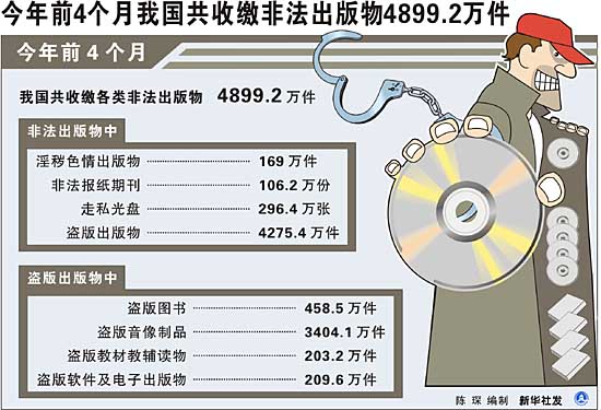 前4個月我國收繳非法出版物4899.2萬件