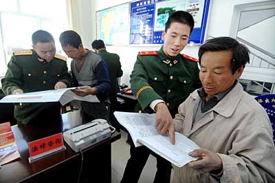 2006年以來(lái),內(nèi)蒙古先后有90多個(gè)邊防派出所在基層警務(wù)室中設(shè)立法律咨詢臺(tái),為群眾提供法律咨詢服務(wù),彌補(bǔ)了偏遠(yuǎn)地區(qū)法律維權(quán)力量的不足。目前已累計(jì)接待外來(lái)務(wù)工人員和當(dāng)?shù)厝罕姺勺稍兘f(wàn)人次。 | |