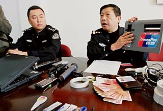 安裝由MP4改裝的攝像探頭竊取銀行卡的卡號(hào)和密碼后,犯罪嫌疑人王某伙同湯某某偽造銀行卡竊取儲(chǔ)戶銀行卡內(nèi)存款21.6萬元。25日,經(jīng)過近10個(gè)月的縝密偵察,福州市公安局經(jīng)偵支隊(duì)破獲這起特大偽造銀行卡詐騙案。 去年5月,福州警方接到某銀行報(bào)案,有一客戶反映稱手中的銀行卡未丟失,但卡中的的21.6萬現(xiàn)金在異地被取走。接到報(bào)案后,民警成立專案組,循線追查,終于鎖定兩名犯罪嫌疑人并展開抓捕。今年3月17日,在南京警方的協(xié)助下將犯罪嫌疑人王某抓獲歸案,繳獲作案用電腦一臺(tái)、MP4改裝的攝像探頭一套、仿真銀行面版讀卡器一套、門禁一套、現(xiàn)金1000余元等贓款贓物。 經(jīng)查,犯罪嫌疑人王某伙同湯某某于去年4、5月間兩次流竄至福州,選擇人員比較密集的二十四小時(shí)自助銀行作為作案地點(diǎn),安裝讀卡器和自制的由MP4改裝的攝像探頭,當(dāng)客戶刷卡時(shí),就被攝像探頭竊取密碼。犯罪嫌疑人根據(jù)竊取去的卡號(hào)和密碼,通過電腦、寫卡器等工具偽造出儲(chǔ)戶銀行卡提現(xiàn)或轉(zhuǎn)賬,竊取個(gè)人現(xiàn)金。目前,犯罪嫌疑人王某已被刑事拘留,另一名犯罪嫌疑人湯某某警方正在追捕,案件還在進(jìn)一步審理中。