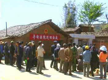10日,在云南省尋甸回族彝族自治縣大水塘村,縣法院在村子的一片空地上,掛起了莊嚴(yán)的國(guó)徽,多名法警在現(xiàn)場(chǎng)維持著秩序,一名審判長(zhǎng)、一名書(shū)記員、加上原告和被告以及雙方辯護(hù)人,組成了一個(gè)在基層農(nóng)村開(kāi)庭的巡回法庭。