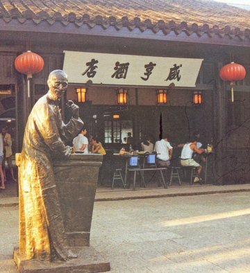 魯迅活著時,為了寫作,長年累月地咳嗽、咳痰、咳血;魯迅長年沒有固定的月薪收入及“灰色收入”,只是個自由撰稿人,靠一個字一個字地在燈下爬格子換取收入。 魯迅死后,魯迅的姓名、肖像甚至連其筆下的人物、地名都成了財富。咸亨酒店、魯鎮(zhèn)茶座、百草園飯店、阿Q酒家,在紹興市比比皆是。冠以三味、百草園、祥林嫂、孔乙己、阿Q、華老栓的商店及商品充斥紹興,像孔乙己茴香豆、魯鎮(zhèn)牌醬鴨、七斤嫂烏干菜等還注冊了商標。 有商業(yè)眼光的人士敏銳地意識到魯迅小說《孔乙己》中“咸亨酒店”這4個字的含金量,便依照小說中描寫的格局在魯迅路上修建了咸亨酒店,在酒店門口放置了孔乙己塑像。游覽紹興的國內(nèi)外游客慕名而來,“咸亨”成了中國馳名商標,財源滾滾。 據(jù)紹興市工商局統(tǒng)計,該市以魯迅作品中的人名、地名作企業(yè)名稱或商標的已達300多件。